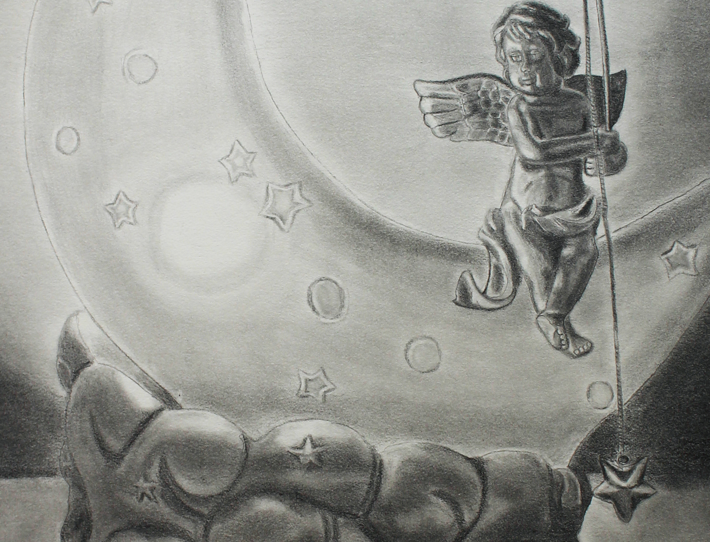 As a student (in 2009), I got to further explore my skills by delving into low-key composition (Guardian's Light) to still-life (Melody's Composition) and found it a very enjoyable experience. I took it one step further this year (2016) and thought that I would sketch and draw out my titles in pencil using lettering and elements combined that would fit the theme of each individual piece.